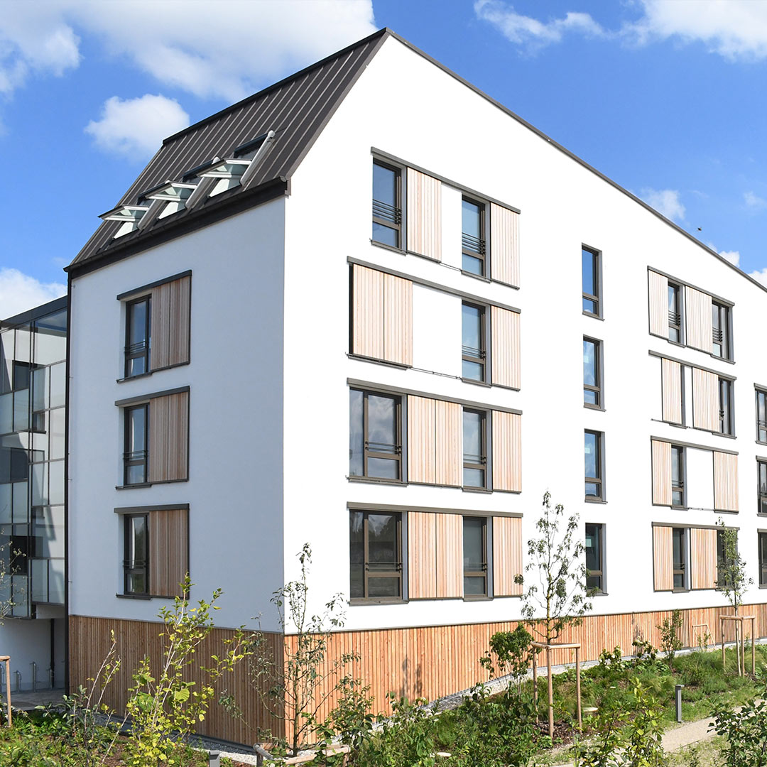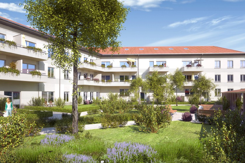 In unmittelbarer Nähe zur S-Bahn Haltestelle, nur 15 Fahrminuten vom Zentrum Münchens entfernt, ist ein modernes Wohnensemble mit 101 Mietwohnungen, einem Lebensmittelmarkt und Gastronomie entstanden.